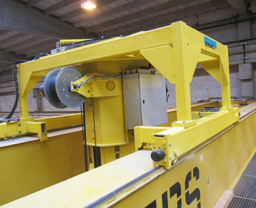 Der Betonierkran hat eine Spannweite von 23.7m und eine Traglast von 5t. Zurzeit wird in Rickenbach LU bei der Sebastian Müller AG ein neues Werk aufgebaut. Nach Fertigstellung der neuen Produktionshallen wird die gesamte Brun Elementwerk AG von Emmen nach Rickenbach zügeln. Auch dieser modernisierte Betonierkran wird im kommenden Herbst gezügelt und die neue Produktion vervollständigen.