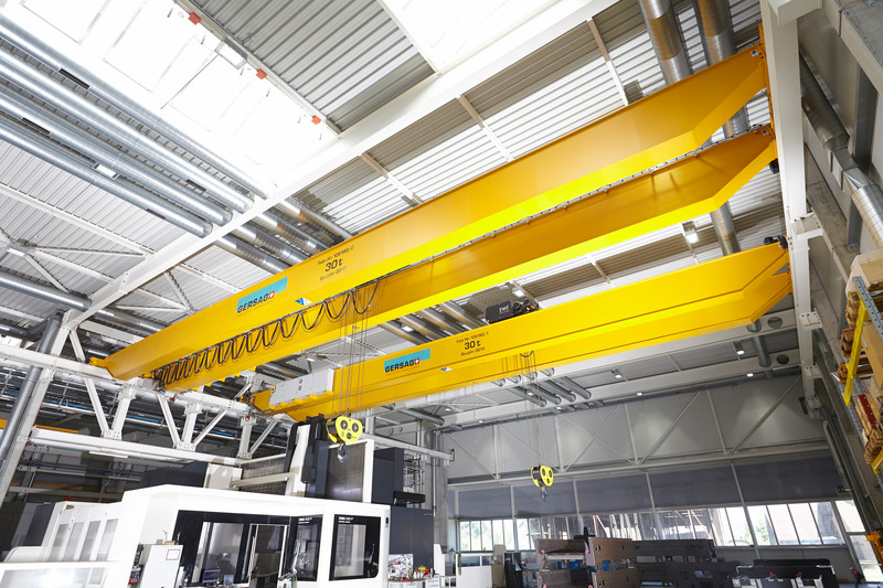 Zum Gesamtkonzept des neuen 5-Achs-Portalbearbeitungscenter für Grossteile mit 3 Tischen bis 75 t - Werkstücke bis L 18 m / B 3,5 m / H 3 m gehören die von GERSAG gelieferten 2 x 30 Tonnen Zweibrückenkrane. Mit einer Spannweite von rund 24 Meter bilden die zwei Kranbrücken das Bindeglied zum Bearbeitungscenter. So können die drei Bearbeitungstische effizient und sicher be- und entladen werden. Durch den optimalen Materialfluss kann das Bearbeitungscenter maximal ausgelastet werden.