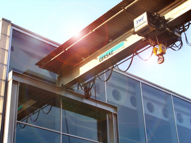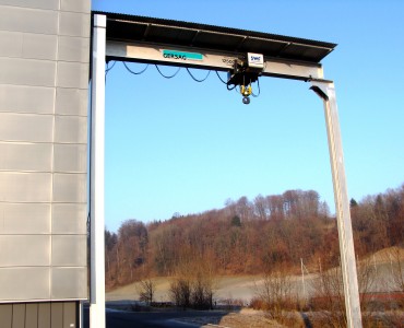 Anwendungsbeispiel ist die Korrosionsschutzindustrie, wo Teile durch eine Spritzkabine bewegt werden können. Oder ein mehrstöckiges Gebäude, bei dem Material ausserhalb des Gebäudes hochgezogen wird und dann in der oberen Etage eingefahren werden kann. Ein weiteres Beispiel ist bei Revisionsarbeiten, wo grosse Motoren so auch an schwer zu erreichenden Orten problemlos ausgebaut und dank der Einschienenbahn befördert werden können, die exakt über dem Schwerpunkt des Motors angeordnet ist.