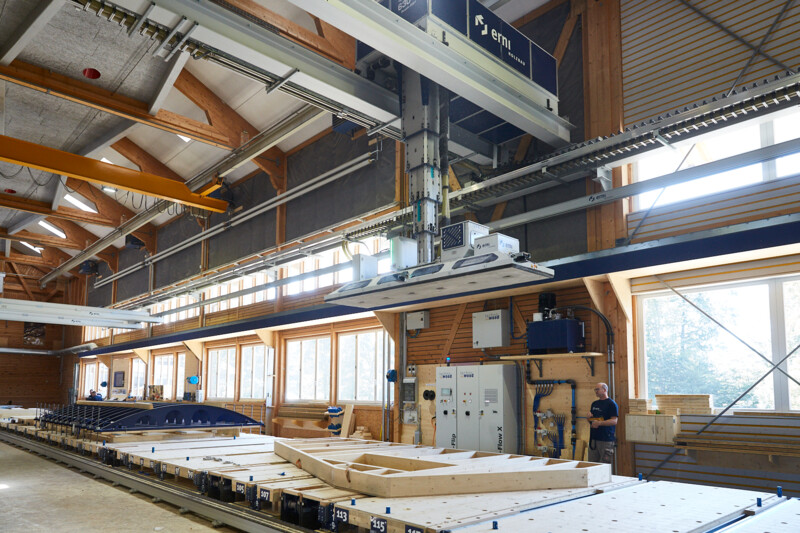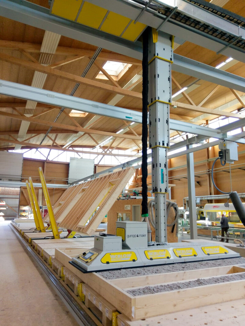 Der Holzbauer Gumpp & Maier ist gut gerüstet für die Zukunft. Mit der neuen Produktionslinie der TechnoWood und dem Karin-Stapelkran wurde eine der modernsten Fertigungslinien Europas in Betrieb genommen.