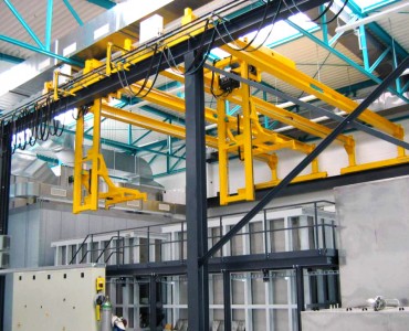 Anwendung finden solche Anlagen zum Beispiel in der Oberflächenbehandlung, wobei der Umsetzer bestückte Gehänge nach verschiedenen Programmen durch unterschiedliche Bäder taucht und dort absetzt. Je nach Medium sind unterschiedliche Tauchzeiten gegeben, welche durch die vollautomatische Steuerung exakt eingehalten werden.