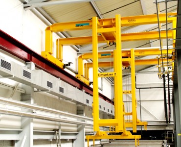 Umsetzer werden vorwiegend als vollautomatische Anlagen ausgeführt. Sie befördern zum Beispiel Gehänge von verschiedenen Positionen vollautomatisch durch einen programmierten Arbeitszyklus. Durch die geführte Hubbewegung ist exaktes Positionieren auch im Automatikbetrieb möglich. Absolute Wegmesssysteme garantieren jederzeit eine genaue Positionierung. Verschiedenste Ausführungen sind hier möglich. Je nach Hubhöhe und Platzverhältnissen wird der Hubmast als einfache Führung ausgebildet oder lässt sich sogar teleskopieren.