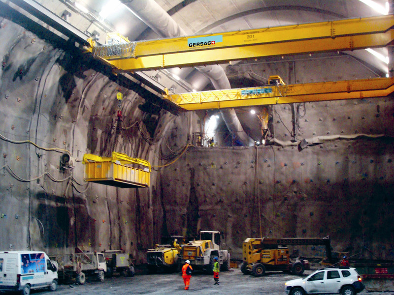 Die Konstruktion, Lieferung und Montage der sieben Einträger- und Zweiträger-Brückenkrane war eine logistische Herausforderung, da sämtliche Transporte mit einer Seilbahn vogenommen werden mussten und somit nur Längen von bis zu 15m möglich waren.