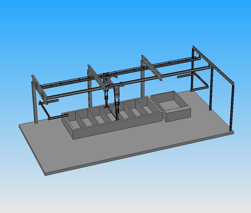 In sieben Bädern findet die Oberflächenbehandlung der Fenster statt. Aufgabe des Krans ist es, das zu beschichtende Material automatisch von Bad zu Bad zu transportieren. Der Kran wird dabei von einer SPS gesteuert, die mit einem Wegmesssystem ausgestattet ist. Für die Messung der Hubposition wird ein optisches Messsystem verwendet.