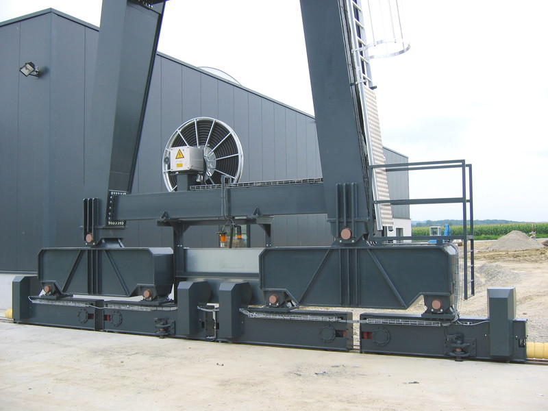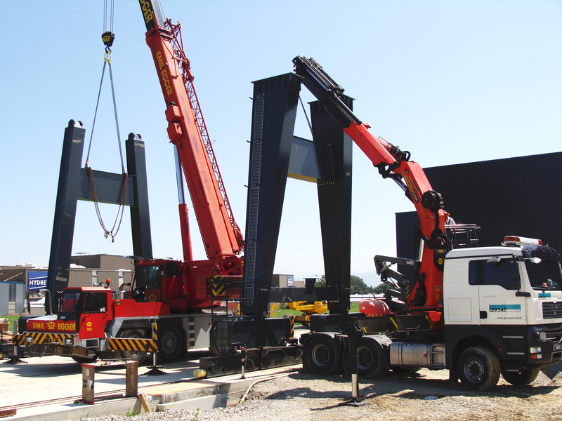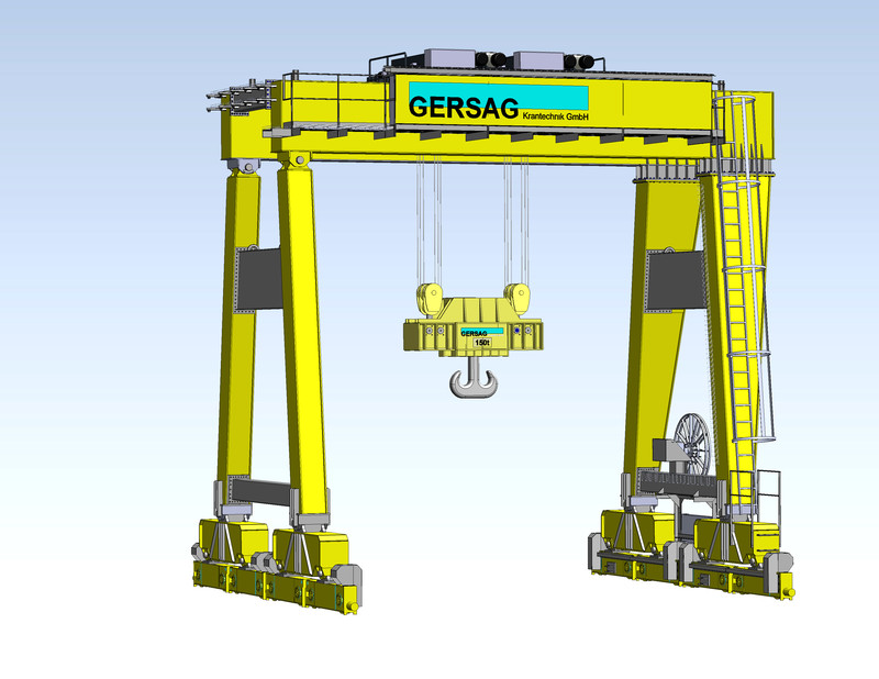 Mit ihrer neuen Tandem-Verseilmaschine stellt Fatzer Seilbobinen her, die bis zu 150t schwer werden. Für deren Handhabung wurde von der Firma GERSAG ein Portalkran mit der entsprechenden Tragfähigkeit entwickelt. Die Konstruktion wurde mit Hilfe von 3D CAD und FEM Berechnungsprogrammen erstellt und als Zweiträger-Portalkran in Kastenträgerbauart ausgeführt. Die Spannweite misst 9.55m und die Gesamthöhe beträgt 11.5m.