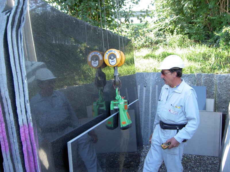 Um die Bewirtschaftung des Granitplatten-Aussenlagers zu optimieren, hat sich die Firma Fliesag AG in Schenkon für Aussenkrane der GERSAG Krantechnik entschieden. Mit zwei Kranen - einem Einträger-Brückenkran und einem Schwenkkran - kann das Material auf dem gesamten Lagerplatz schneller und mit weniger Ressourcen bewegt werden.