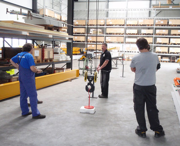 In Ihrem Werk oder unserem Schulungszentrum bilden wir Ihre Mitarbeiter an den entsprechenden Krananlagen aus. Theorie, Kranfahrschulung und der Umgang mit Anschlagmitteln sind die Hauptthemen in diesem Kurs. Die Schulung führt unser spezialisiertes Partnerunternehmen durch: das Schweizerische Kompetenzzentrum heben-fördern-sichern GmbH.