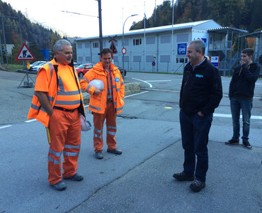 Hier wurden wir von Piero Chirco und Alexander Heim empfangen. Beide sind Mitarbeiter unseres Kunden, der GMI (Groupement Marti Implenia) und sind auf der Grossbaustelle „Nant de Drance“ tätig. Hier wird aktuell das zweitgrösste Pumpspeicherkraftwerk der Schweiz gebaut. Mit 900 MW Leistung wird es nach Inbetriebnahme Ende 2018 jährlich rund 2.5 Milliarden kWh Strom erzeugen.